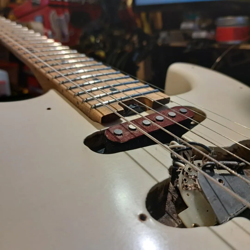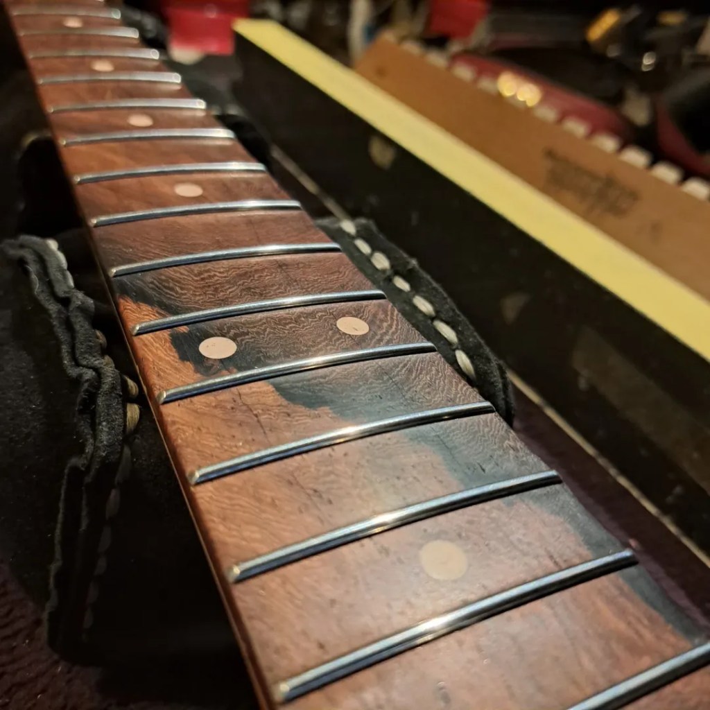 Olley figured out an issue that’s been plaguing my Gibson Firebird since forever – choking up the neck which no amount of tweaking could sort. A shave of the fretboard and a refret later, and it’s the ‘bird I always wanted. Thanks, Olley!
